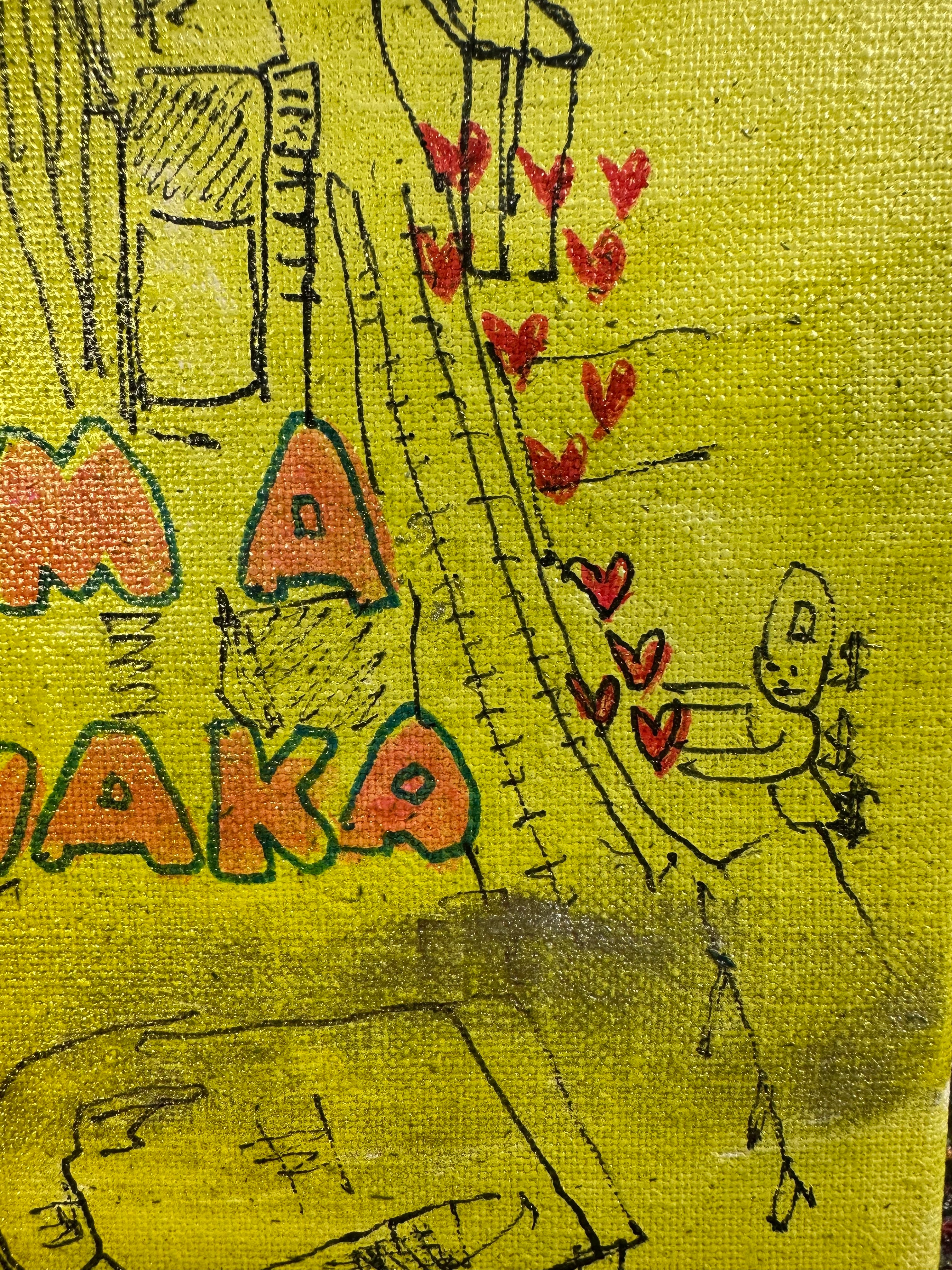 キャンバスに、油彩、ペンなど